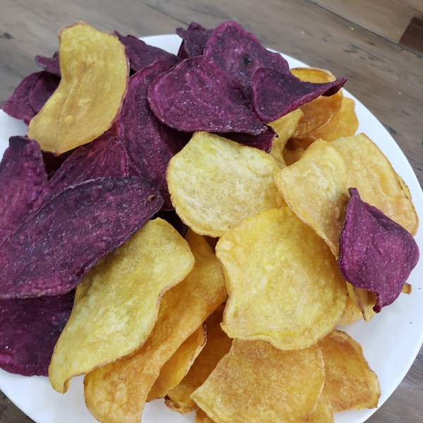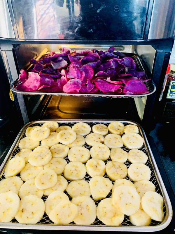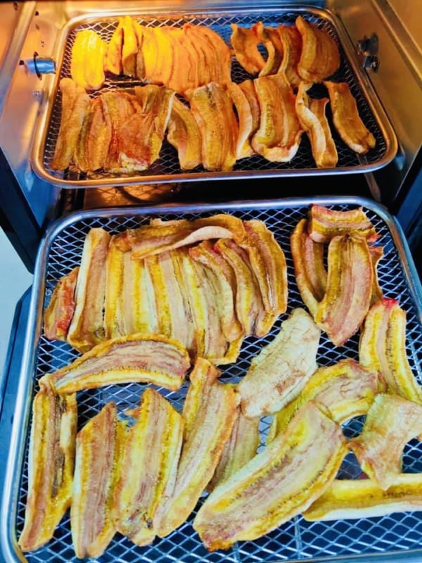 - Sấy chuối bằng nồi chiên không dầu: Lột vỏ chuối và cắt thành các miếng nhỏ. Xếp chuối lên giá và sấy trong khoảng 2-3 giờ ở nhiệt độ 65-70 độ C.
