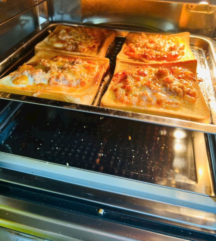 – Cho vào nồi chiên hấp, chọn chế độ nướng pizza và nướng khoảng 7 phút
