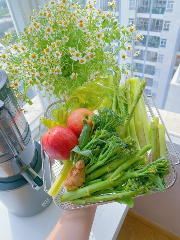 Ép xen kẽ các loại rau, củ…..