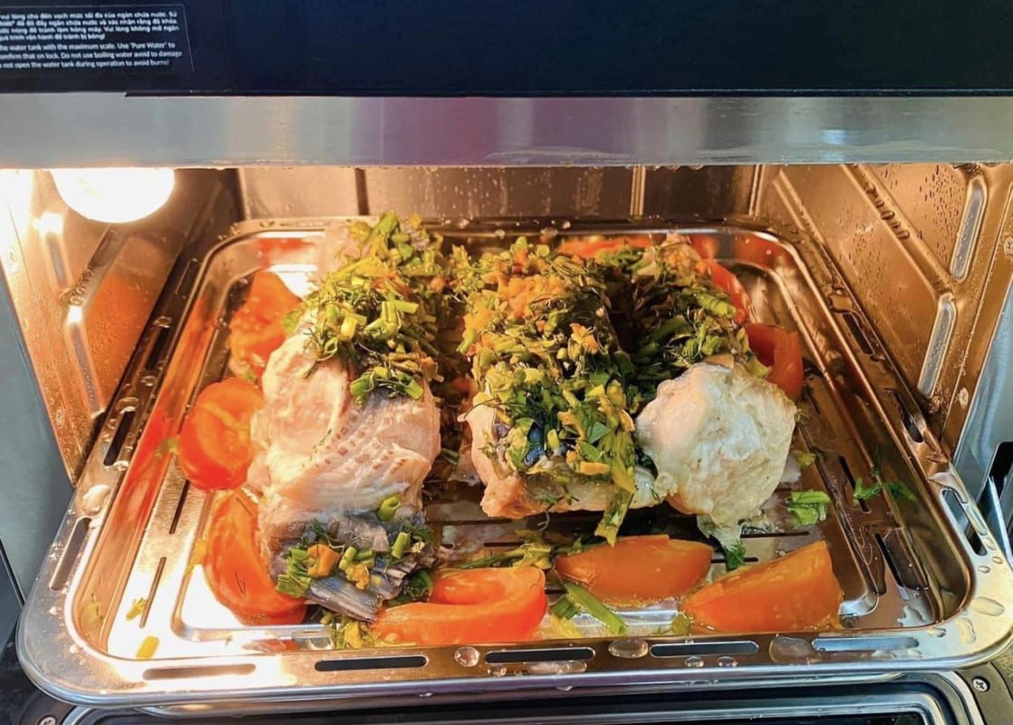 Vừa chiên, vừa hấp, cứ thế có ngay bữa cơm ngon lành.