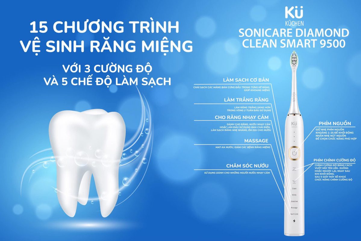 Bàn chải đánh răng điện sóng âm Kuchen, Ku Diamond Clean 9500