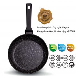 Bên ngoài là lớp phủ đá Magma-Tech…, cung cấp hiệu suất chống dính cao và độ bền bỉ cho sản phẩm, đồng thời giúp giữ nhiệt tốt, cho thức ăn trong nồi nóng lâu hơn.
