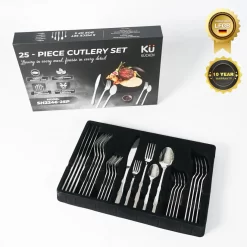 Bộ thìa dĩa bàn ăn Cutlery Set KU SH2246 gồm 5 bộ đầy đủ công năng cho mỗi thành viên (tổng 25 món), đáp ứng mọi nhu cầu bàn ăn từ món chính đến tráng miệng. Mỗi bộ bao gồm: