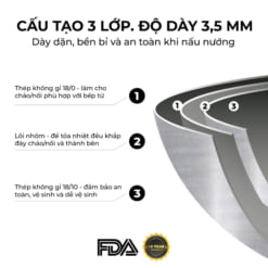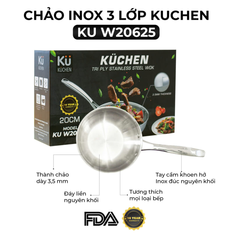 Chảo KU W20625 thuộc dòng chảo Triply cao cấp của Kuchen, với đường kính 20 cm, chiều cao 7,5 cm và độ dày lên tới 3,5 mm (là chảo có thành dày nhất trên thị trường).