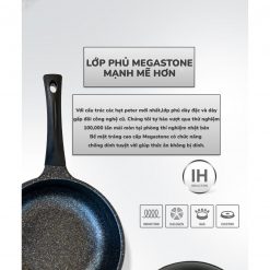 Bề mặt tráng cao cấp Megastone có chức năng chống dính tuyệt vời giúp thức ăn không bị dính.