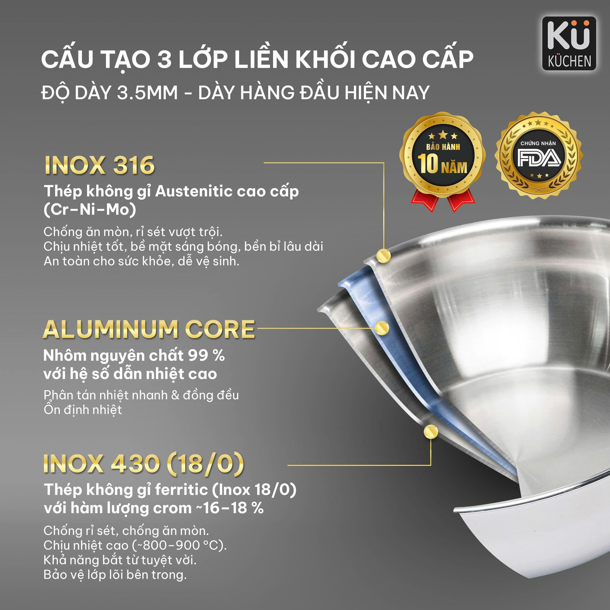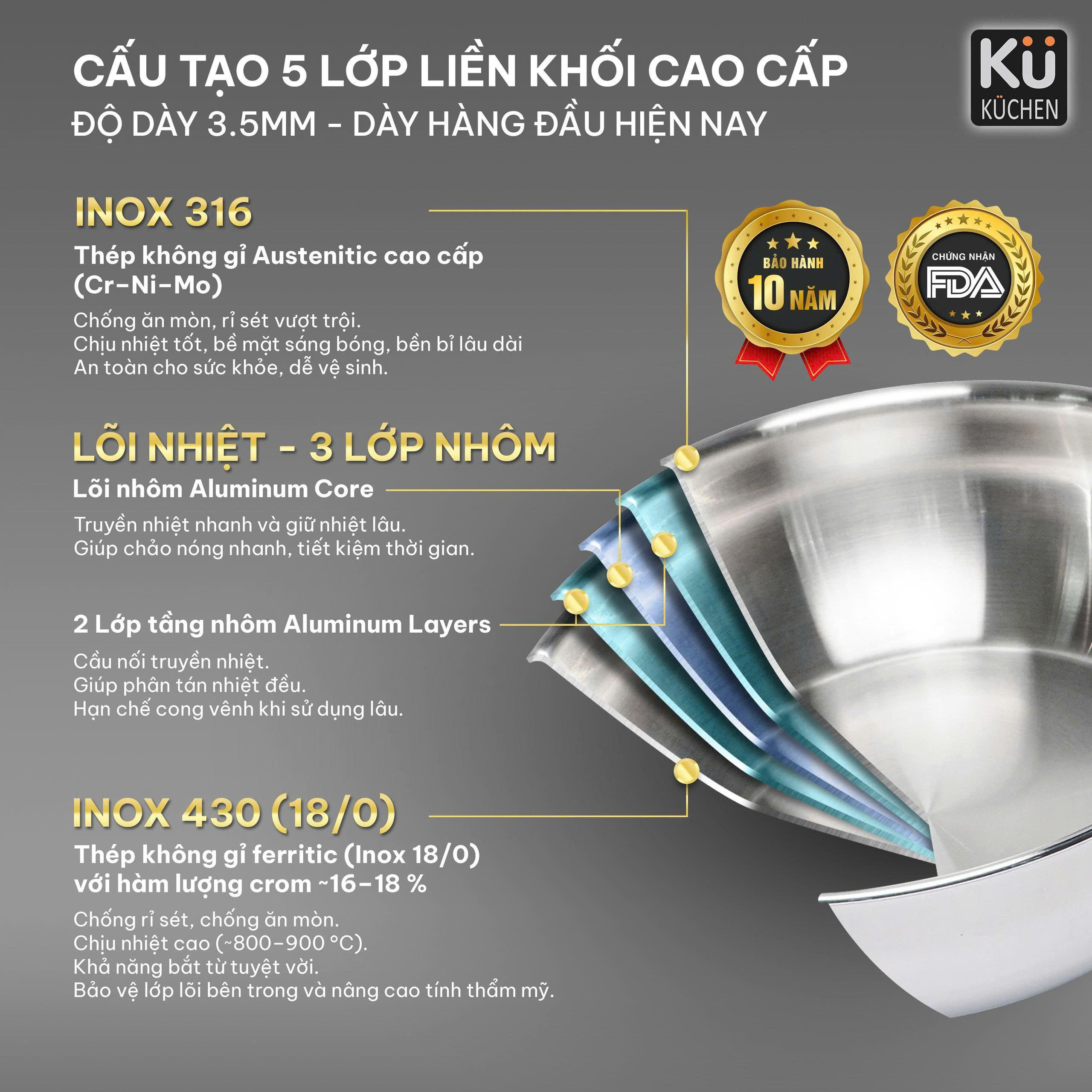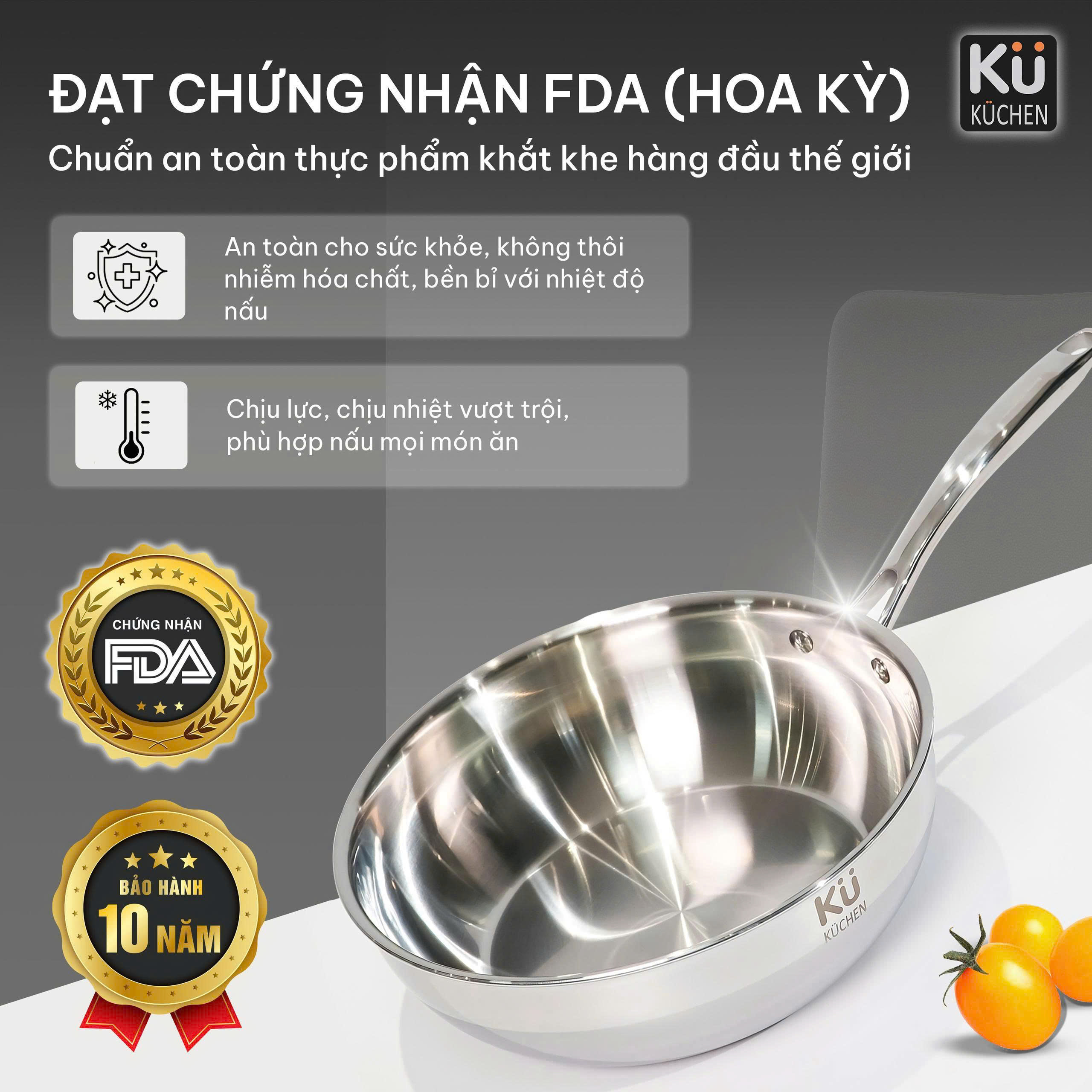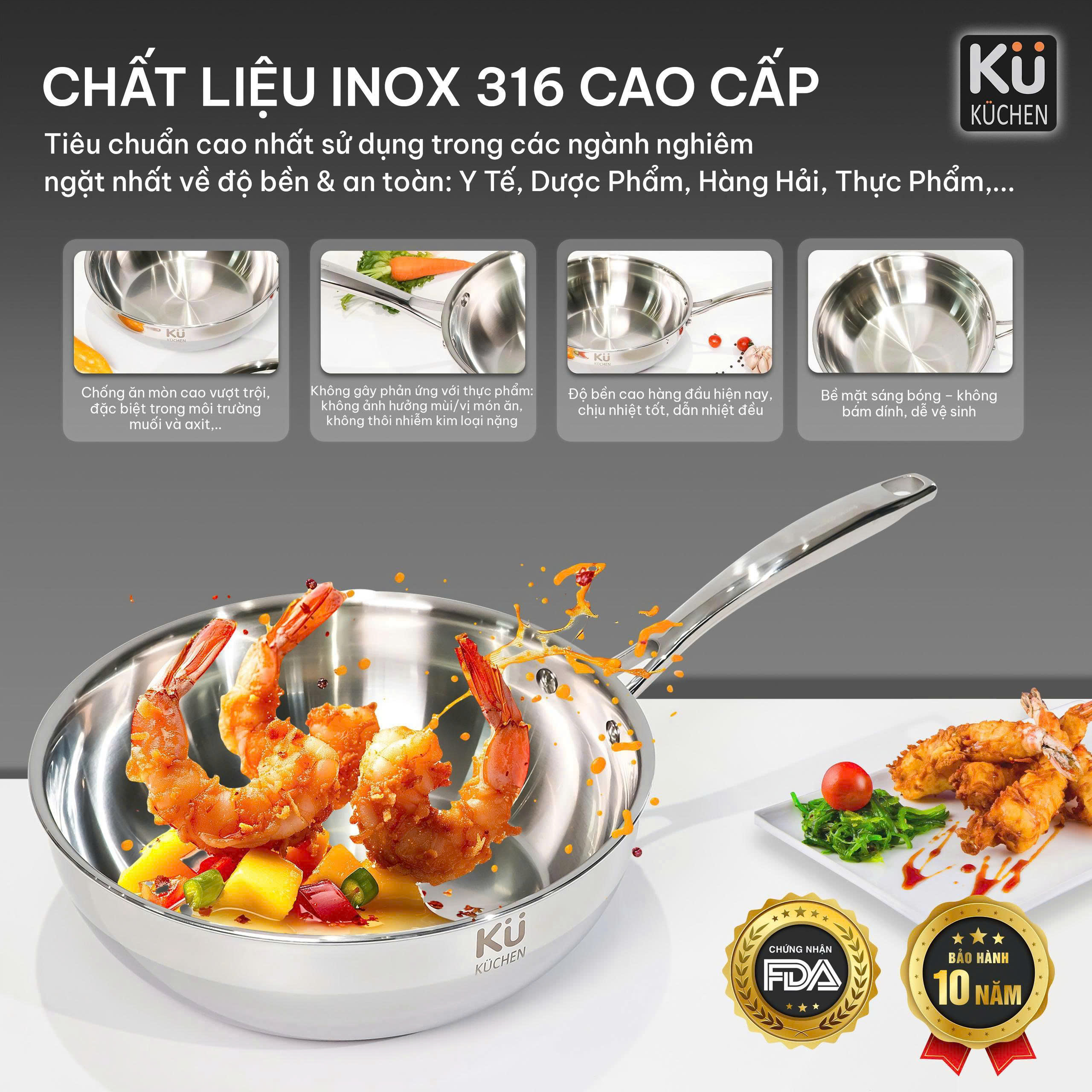 Chảo rán inox 316 28cm cao cấp KUCHEN KU FP281316