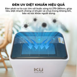 Tiêu Diệt Vi Khuẩn và Virus: Thiết bị được trang bị đèn UV phát ra tia cực tím với bước sóng từ 270-280nm, có khả năng tiêu diệt nhanh chóng vi khuẩn, virus và các tác nhân gây bệnh trong không khí. Nhờ vào công nghệ này, không khí trong nhà bạn sẽ được làm sạch và an toàn hơn, góp phần bảo vệ sức khỏe cho cả gia đình, đặc biệt là trong những mùa dịch hoặc khi thời tiết ẩm ướt.