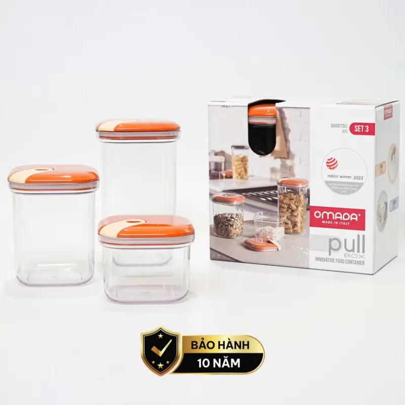 Set 3 hộp đựng thực phẩm khô (500-1000-1500ml) nhựa nguyên sinh pull box cao cấp OMADA – Model : M6933SI