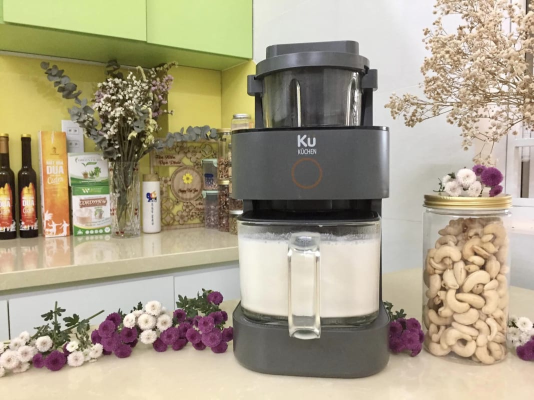 Cho hạt điều đã rửa sạch và máy sữa hạt Kuchen