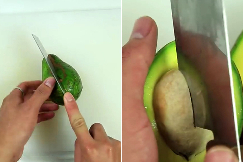 – Sơ chế bơ: Rửa sạch, chẻ đôi rồi bỏ hạt