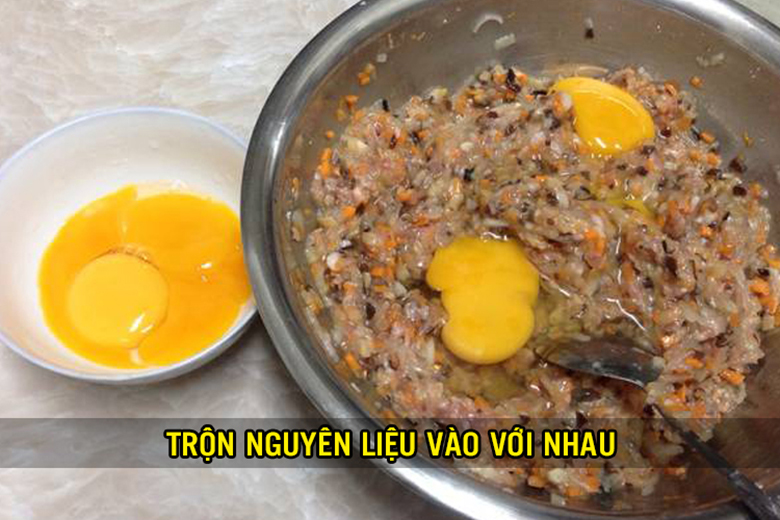 + Phần trứng + lòng trắng còn lại cho vào một tô, đánh đều (2)