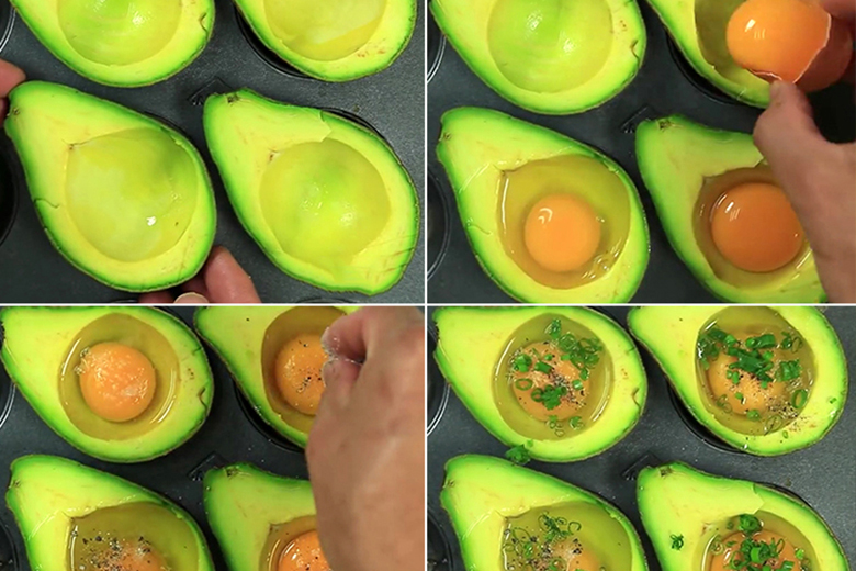 + Đập 01 quả trứng vào lòng quả bơ